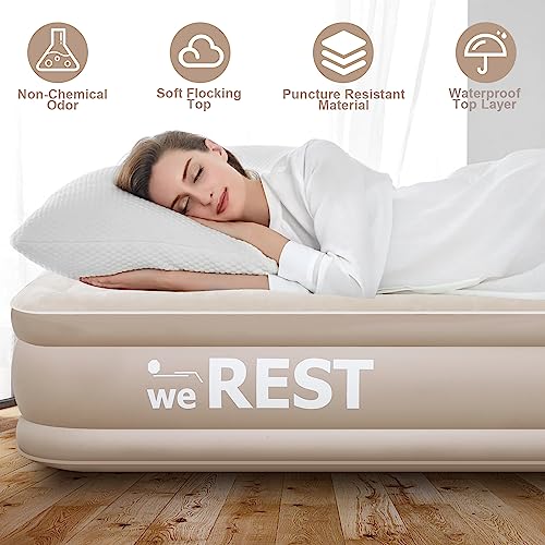 WeREST Materassino Gonfiabile, Materasso ad Aria con Pompa Elettrica Incorporata, Letto Matrimoniale Gonfiabile per Ospiti Autogonfiabile con Superficie Floccata(Singolo)
