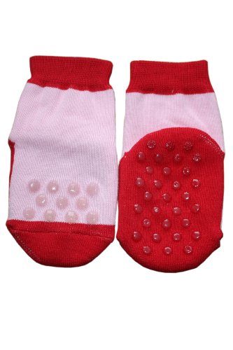 Weri Spezials ABS Calzini per Bambini con suola Antiscivolo, Colore: Rosso, Taglia: 19-22 (12-24 mesi), Doppia faccia ABS