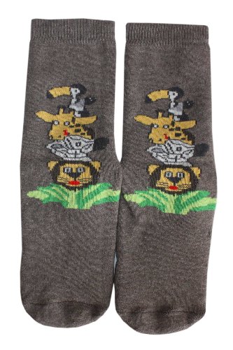 Weri Spezials Calzini ABS per Bambini con suola Antiscivolo, Colore: Marrone, Taglia: 23-26 (3-4 anni), "Safari Africano"