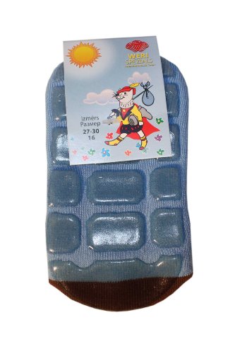 Weri Spezials Spugna Calzini ABS per Bambini con suola Antiscivolo, Colore: Blu chiaro, Taglia: 19-22 (12-24 mesi), "Orso e Api"