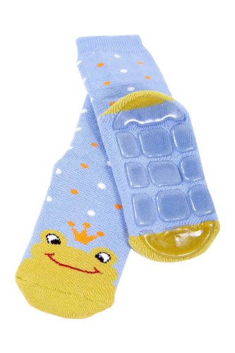 Weri Spezials Spugna Calzini ABS per Bambini con suola Antiscivolo, Colore: Blu chiaro, Taglia: 17-18 (6-9 mesi), Ranocchio