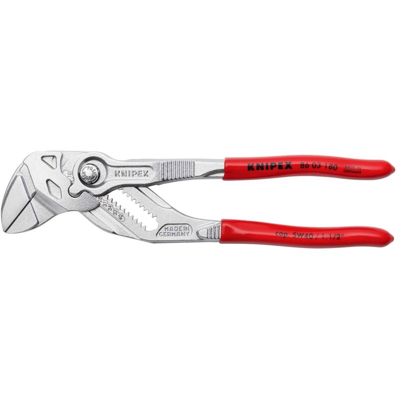 Dettagli tecnici Dimensione del prodotto, lunghezza 180 mm Peso 280 g Tipo prodotto Pinza chiave combinata Esecuzione: nichelata Manici: rivestiti in resina sintetica B1: 5 mm B2: 8 mm B3: 12 mm regolazioni: 13 Misura nominale: 180 mm Per dadi apertura: 1 3/8 Pollici Per dadi apertura: 35 mm Lunghezza: 180 mm Pinza chiave combinazione di pinza e chiave in un unico utensile nichelata rivestiti in resina sintetica 180 mm Utensile regolabile per avvitatura Particolarmente adatta anche per serrare, sostenere, schiacciare e piegare pezzi Sostituisce un intero assortimento di chiavi, metriche e in pollici Becchi piatti per installazioni sanitarie con superfici delicate Nessun danneggiamento degli spigoli su installazioni sanitarie con superfici delicate tramite l´ampia superficie di serraggio senza gioco Regolazione rapida e precisa mediante pressione sul pulsante direttamente sul pezzo in lavorazione Per serrare in continuo tutte le aperture fino alla capacità indicata grazie alle ganasce