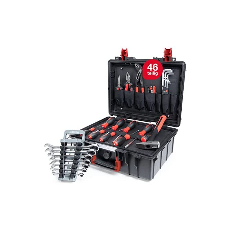 Ingresso perfetto: la valigetta Wihade ha de un kit di base de 46 pezzi, ideale per iniziare il lavoro o per los artigiani industriali, meccanici de impianti e industriali..., Grazie a alla divisione interna y a ai pratici scomparti, la valigia offre un enorme spazio di archiviazione e si adatta a a valigie di grandi dimensioni in termini de spazio in nulla. (Interno: 42 x 30 x 16 cm, esterno: 45,7 x 36,7 x 36,7 x 18,3 cm), Qualità Wiha solito: nel caso di lavoro c'èa utensile Wiha di alta qualità e di base ideale per unaa ampia gamma de applicazioni industriali e de fai-da-te., Inoltre, la custodia può essere protetta dal furto attraverso gli occhielli integrati con un lucchetto. Targhetta e valvola decompensazione depressione completano il pratico compagno, Conconclasse de protezione IP67, la borsa portautensili de è resistente alla polvere e all'acqua. Con20 Lde capacità euna capacitàde carico ammissibile fino a 14 kg, un aiutante ideale in unauna vasta gamma di de usi.
