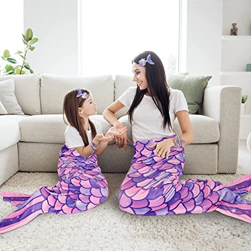 PER IL SOGNO DELLA SIRENA: la nostra coperta a coda di sirena soddisferà il sogno di ogni ragazza. Questo design a coda di sirena viola con forcina e cinturino a tema sirena di bellezza trasformerà la tua bambina nella più bella principessa sirena!
