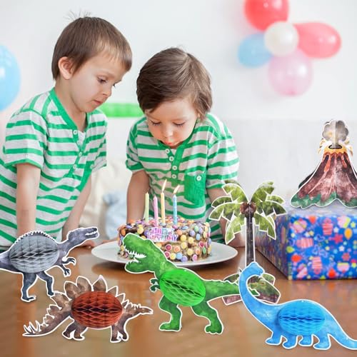 WERNNSAI Decorazione del Partito di Dinosauro - 8 Pezzi Forniture per Feste di Dinosauri per Bambini Ragazzi Topper da Tavolo per Baby Shower di Compleanno Centrotavola a Nido d'Ape per Feste