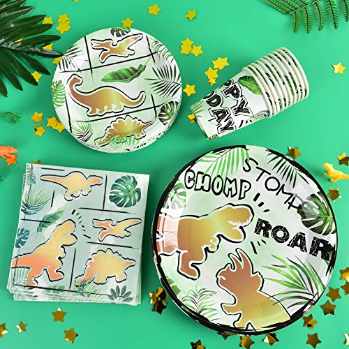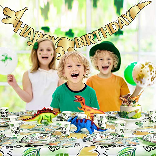 WERNNSAI Forniture per Dinosauri - Decorazioni per la Festa di Compleanno dei Dinosauri per Ragazzi Palloncini Banner Piastre Tazze Tovaglioli Tovaglia Serve 16 Ospiti 89 PCS