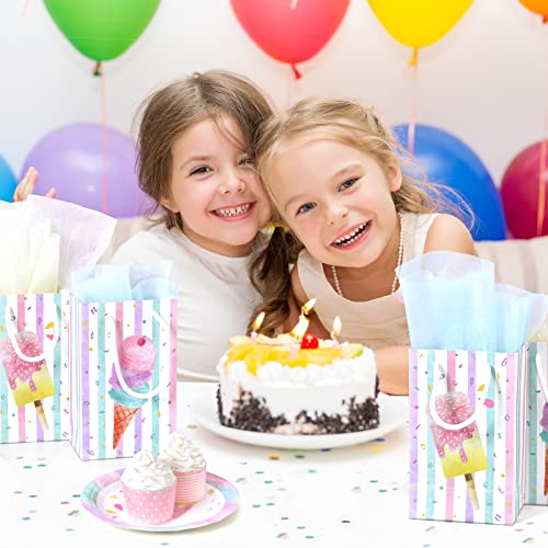 WERNNSAI Gelato Sacchetti Regalo - 16 Pezzi Gelato Tema Articoli per Feste Rosa Portatile Gli Extra Caramella Borse di Stoffa con Maniglie Bomboniere Borse per Ragazze Dolce Compleanno Baby Shower
