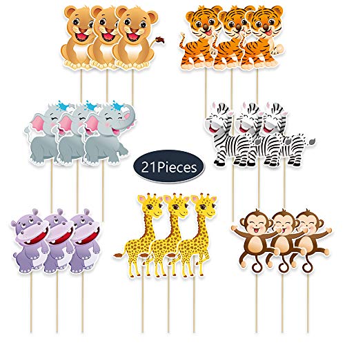 WERNNSAI Giungla Safari Tema Festa Decorazioni Tavolo Toppers - 21 Pezzi Zoo Animali Centrotavola Sticks per Bambini Compleanno Baby Shower Articoli per Feste