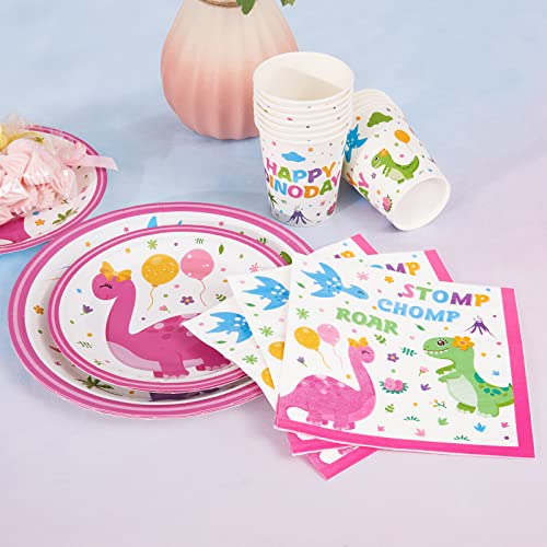 WERNNSAI Stoviglie per Feste di Dinosauri - Forniture per Feste Dino per Ragazze Compleanni Baby Shower Carta Pranzo Cena Dessert Piatti Tovaglioli Tazze per 16 Persone