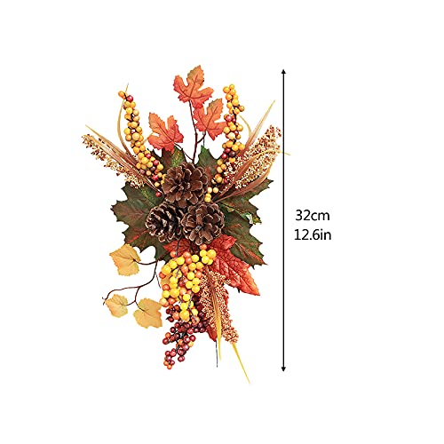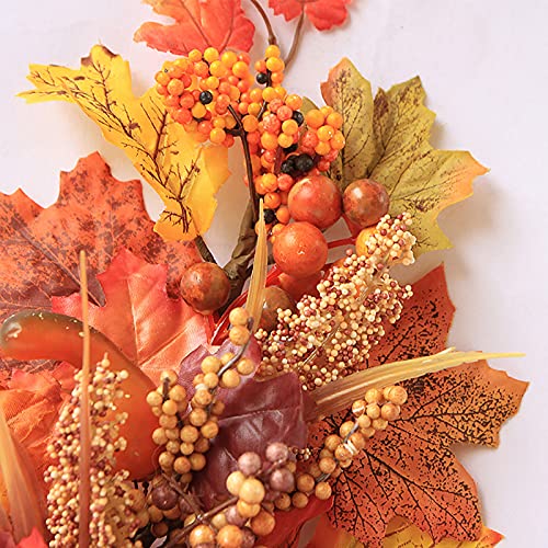 WERTSWF Ghirlanda autunnale per porta d'ingresso, finta pigna, foglia d'acero, ramo di bacche per decorazioni di Halloween del Ringraziamento