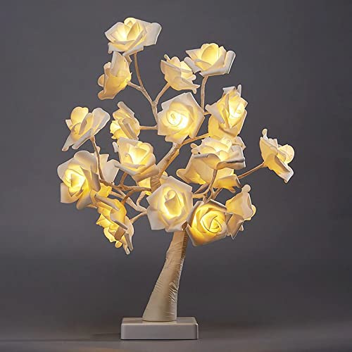 WERTSWF Luci a LED per bonsai con rose bianche illuminate, con luci a forma di rose finte che fioriscono la lampada da tavolo per ragazze, regalo di San Valentino, USB/a batteria