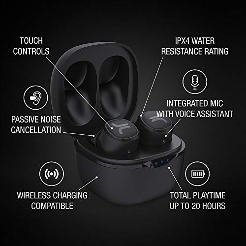 WESC Auricolari True Wireless, Cuffie Bluetooth con Custodia di Ricarica con LED, 20 ore di Riproduzione, Controlli Touch, Resistenti all'Acqua IPX6 - Nero