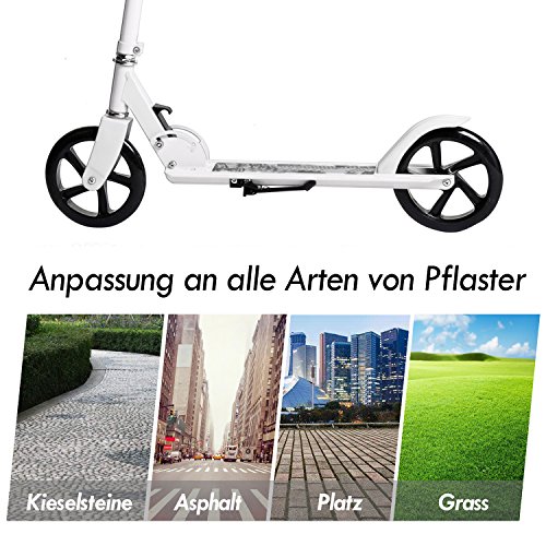 Altezza manubrio: extra large Cityroller regolabile con manubrio regolabile. Adatto per adulti, teenager unnd bambini dai 12 jahren. ed è progettata per stature da 120 cm fino a 195 cm (carico massimo è di 100 kg)