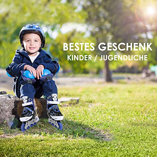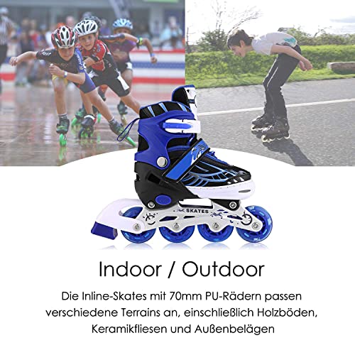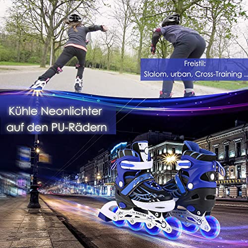 WeSkate, pattini in linea per bambini/adulti, otto ruote illuminate, con rete traspirante e telaio in alluminio. Regolabili per 3 misure: 31-34, 35-38, 39-42., Blau, 31-34