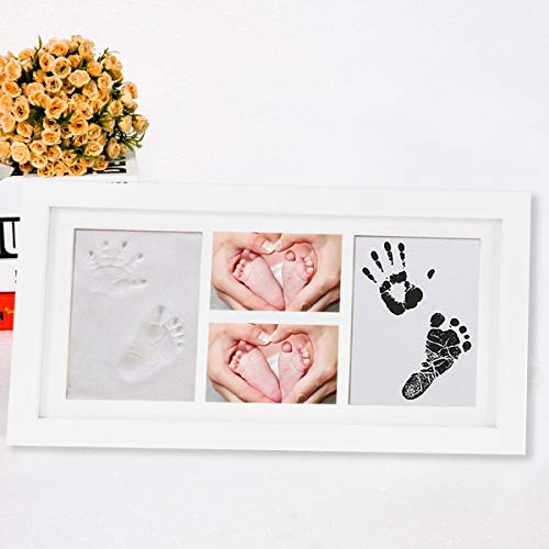 WesKimed Cornice Impronte Neonato, Set Impronta Bambino Bimbi con Un Touchpad Safe Inchiostro Doppio Sistema Argilla e Inchiostro Cornice Legno for Baby Ricordo Ideale- Versione2020