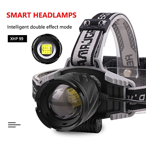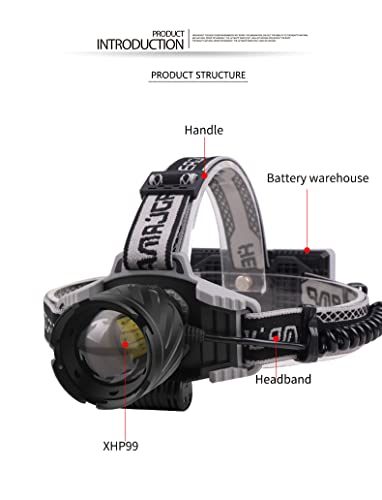 Lampada Frontale 12000 lumen: con le ultime perle della lampada a 9 core XHP99, la luminosità raggiunge un massimo di 12000 lumen.Torcia frontale super luminosa per elmetto, caccia, pesca, campeggio, escursionismo, riparazione auto, lavori di costruzione, ecc.
