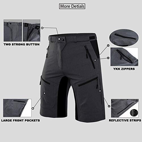 Wespornow Pantaloncini Mountain Bike Uomo-Asciugatura Rapida Pantaloncini MTB Uomo-Traspirante-Pantaloni- Antibatterica-Bici MTB-Shorts per Ciclismo da Corsa All'Aperto (Grigio Scuro, S)