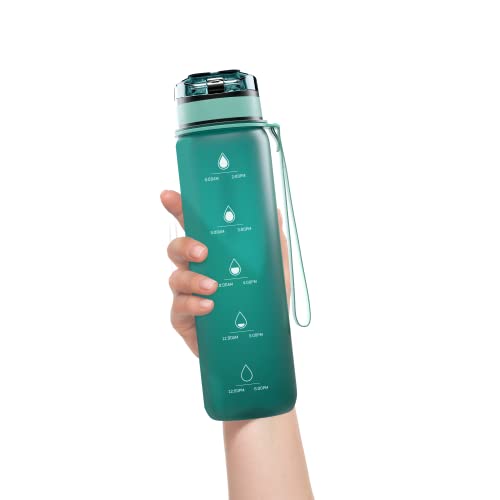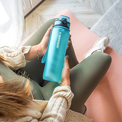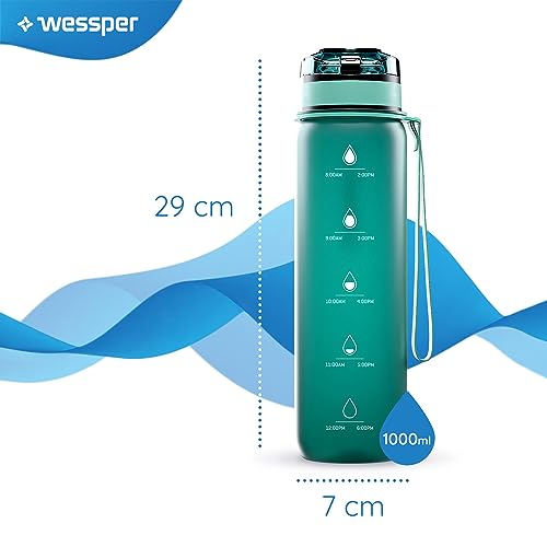 Wessper Tritan Borraccia 1 L, Bottiglia d'acqua con Indicatori di Tempo, Borraccia Sportiva, senza BPA | per Monitorare l'assunzione Giornaliera di Acqua | per Yoga, Corsa, Campeggio - Menta