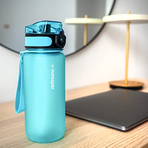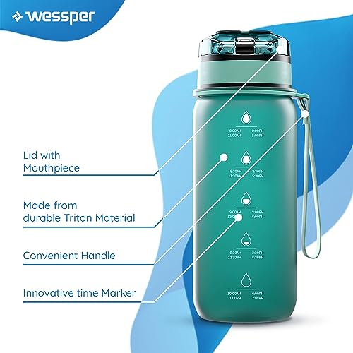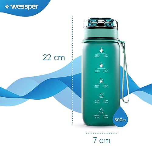 Wessper Tritan Borraccia 500 ml, Bottiglia d'acqua con Indicatori di Tempo, Borraccia Sportiva, senza BPA | per Monitorare l'assunzione Giornaliera di Acqua | per Yoga, Corsa, Campeggio - Menta