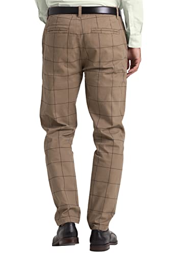 WestAce Pantaloni da uomo chino slim fit pantaloni casual in twill elasticizzato, Khaki - Check, 34W/30L