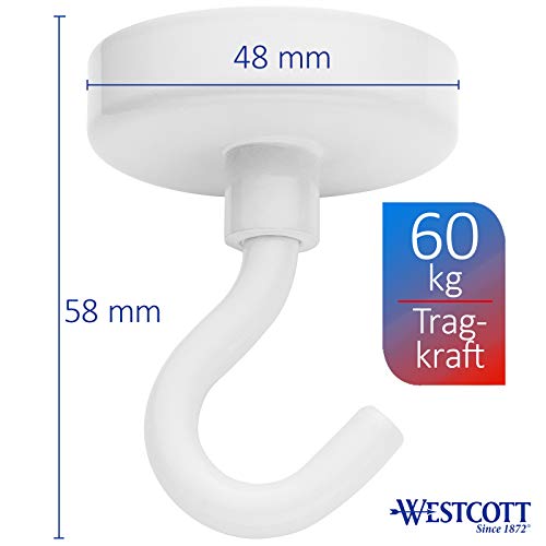 Westcott E-10829 00 - Gancio magnetico al neodimio, 48 mm, tenuta fino a circa 60 kg, colore bianco.