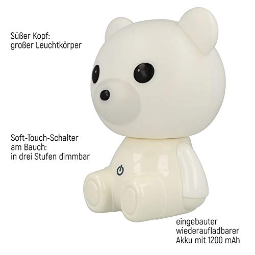 Westcott Lightbuddies E-88002 00 - Lampada da notte a LED per bambini con batteria e cavo di ricarica USB, dimmerabile, colore: crema bianco