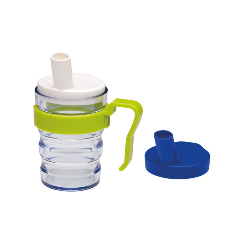 Il bicchiere ha 2 diversi attacchi ed è adatto sia per liquidi (Ø 6 mm) che per alimenti finemente frullati (10x16 mm). Inoltre è incluso il supporto per la maniglia che ne facilita l'utilizzo. Quantità: 6 pezzi.