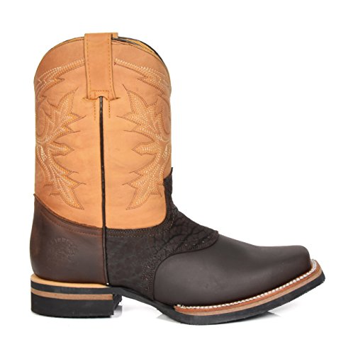 Western Cowboy Stivali in Pelle Scivolare su Punta Quadrata Scarpe Tacco a Blocco 11FR-Hi Marrone (EU 39)