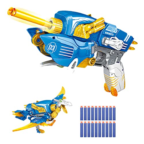 Interessante gioco di tiro: Questo set di dardi per dinosauri viene fornito con 1 blaster di trasformazione, 20 proiettili di schiuma morbida. Il nostro blaster è perfetto per il gioco e consente un divertente gioco di tiro con gli amici o la famiglia.