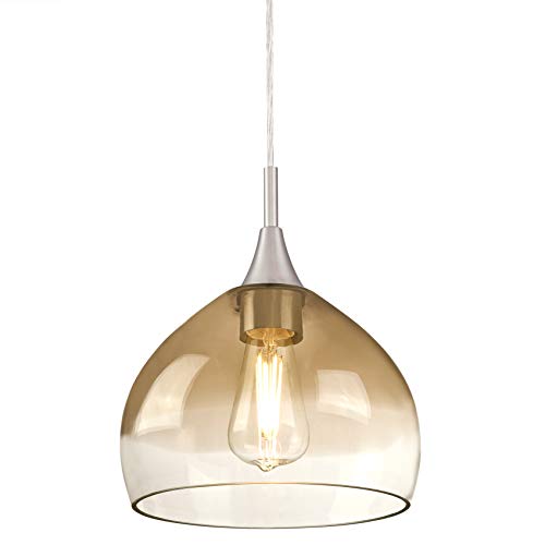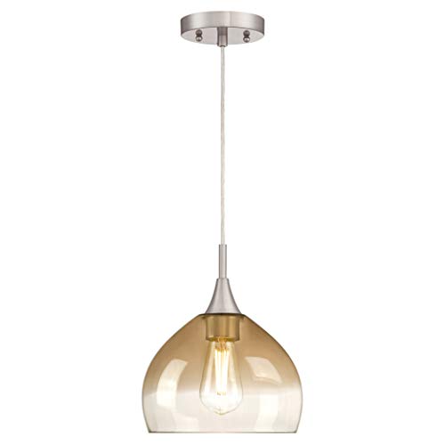 Westinghouse Lighting 63669 - Lampada a sospensione da interno a una luce, finitura in nichel spazzolato con vetro ambrato e trasparente