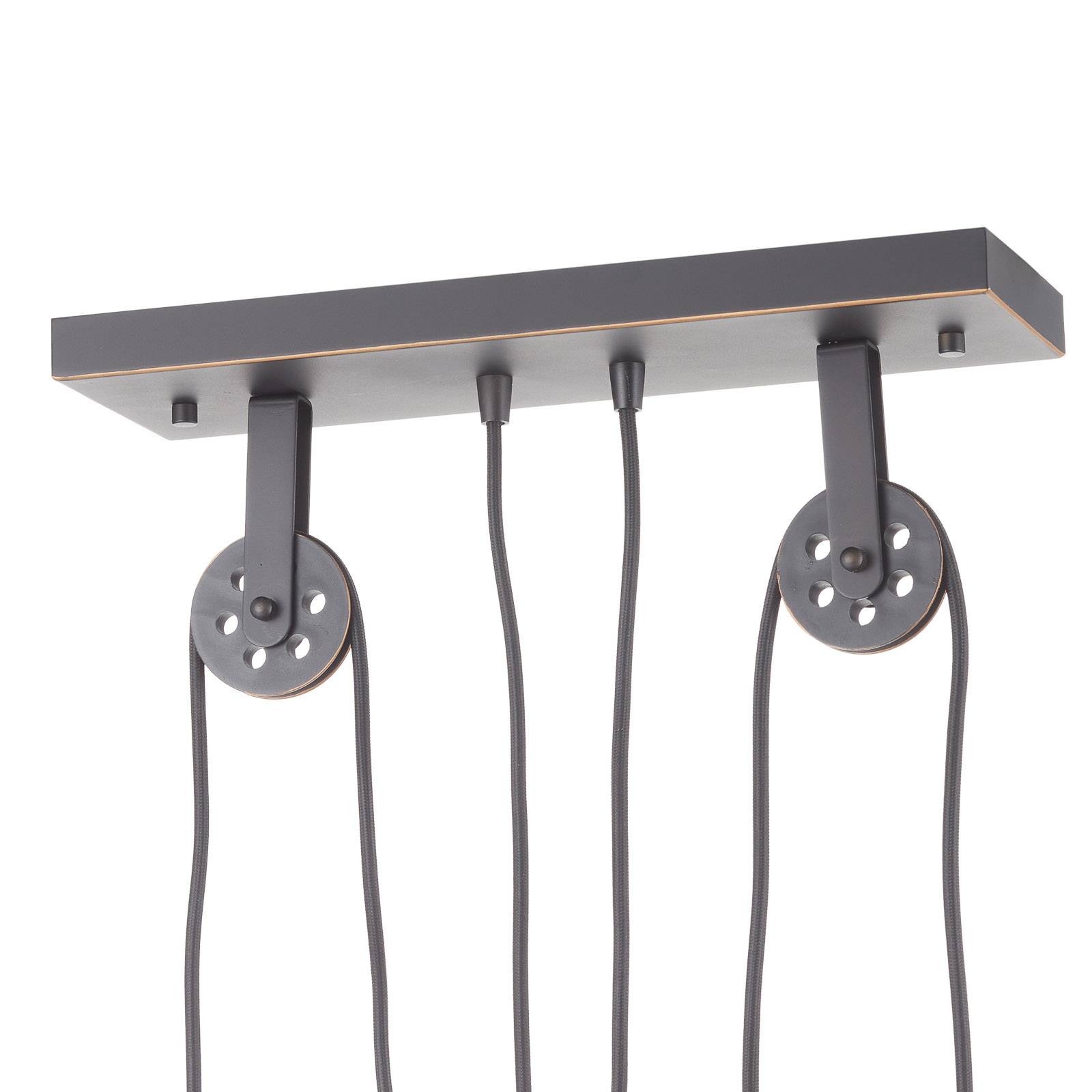 Ciondolo regolabile in altezza Iron Hill in design industriale di tendenza Il design industriale sta godendo di grande popolarità. Sia per l'arredamento di loft moderni che di vecchie case di campagna - lo stile vintage alla moda emana un fascino molto particolare che abbellisce qualsiasi ambiente. Un esempio perfetto di una lampada così trendy è la lampada a sospensione Iron Hill. Iron Hill è costituito da tre paralumi che, grazie alla loro ampia apertura, permettono una chiara visione della lampada. Per completare perfettamente il design industriale, agli accessori sono state aggiunte lampade a incandescenza abbinate in look vintage. I paralumi sono collegati ad un sistema a trazione. Ciò consente di adattare la sospensione dell'apparecchio alle esigenze personali. -altezza regolabile da 81 cm fino a 150 cm