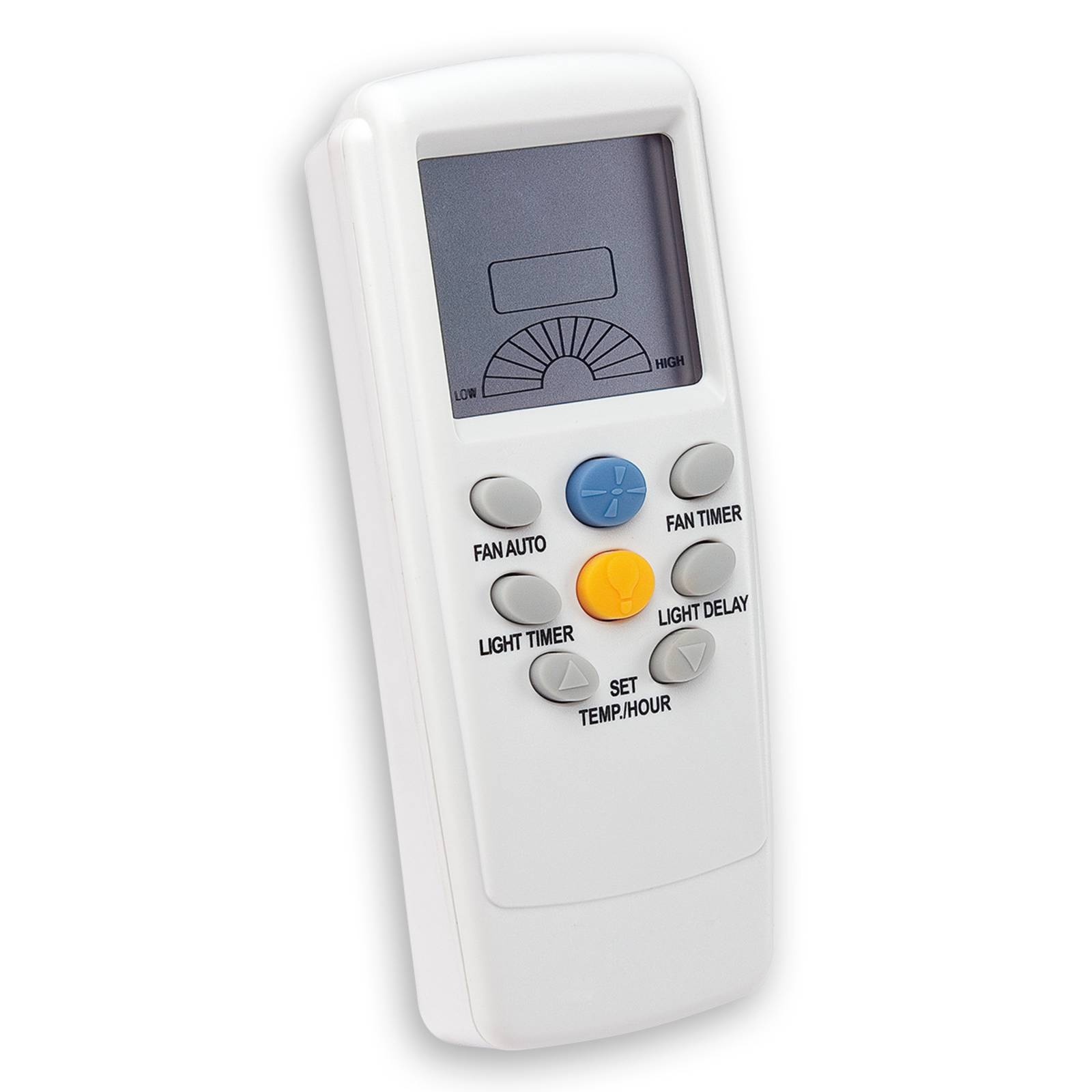 Comandare facilmente i ventilatori da soffitto con il telecomando a radiofrequenzaNota: quando si sceglie un telecomando, accertarsi che i telecomandi siano memorizzati come compatibili con il dispositivo negli accessori del ventilatore acquistato. Questo telecomando è dotato di una comoda dotazione e può essere utilizzato per controllare i modelli di ventilatori Westinghouse (tranne Hugger). È dotato di un interruttore on/off che può essere azionato a tre velocità e di un interruttore della luce (senza funzione di regolazione della luminosità) ed è dotato di un display LCD. È incluso un supporto a parete per avere il telecomando sempre a portata di mano quando serve. Le batterie (4 x 1,5 V AAA) non sono incluse - sono disponibili tramite gli accessori). La fornitura comprende anche la parte ricevente necessaria, che deve essere installata a posteriori per ogni ventilatore. È possibile controllare insieme un numero qualsiasi di ventilatori, a condizione che siano nel raggio d'azione e che sia impostata una frequenza uniforme.