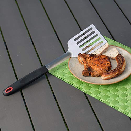 Paletta in acciaio inox ampia e con grandi aperture per girare facilmente pezzi di carne anche grandi, Paletta leggermente curva per un facile utilizzo