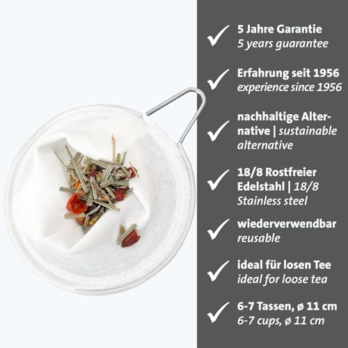 Classica retina da tè sostenibile in puro cotone, Da inserire nella teiera, Infusione di tè in foglie o spezie