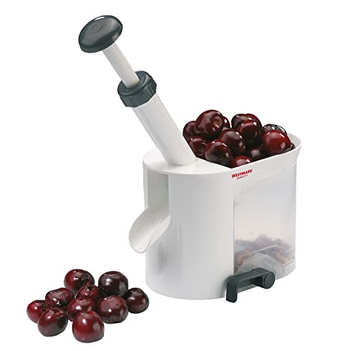 Westmark Snocciolatore per ciliegie con canale e vaschetta per noccioli, Incluso Set di Ricambio da 4 Pezzi, Plastica/Acciaio inox, Bianco/Antracite, 403022E6