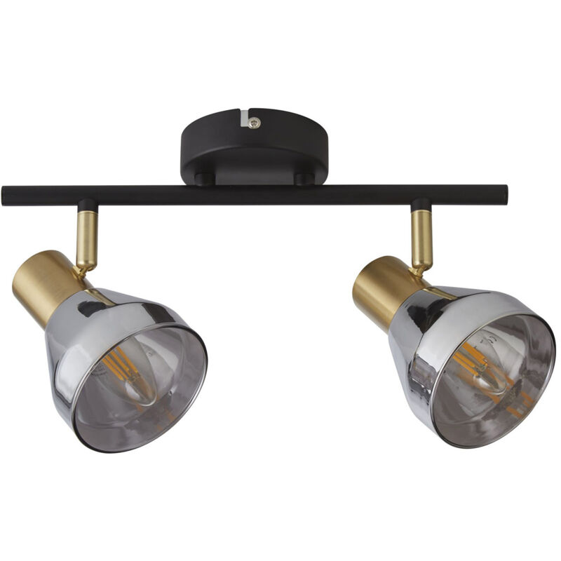 Collezione Westminster MIX VINCENTE TRA ORO E VETRO SPECCHIATO Il faretto Westminster da 2 luci presenta un design accattivante nei colori ottone satinato e fumo, completato da un'elegante finitura nera. La tonalità fumé del vetro crea un effetto luminoso morbido e diffuso, aggiungendo una delicata illuminazione all'area circostante. Questo crea un ambiente accogliente e invitante, perfetto per creare un'atmosfera calda e accogliente nella tua cucina o sala da pranzo. Con il suo vetro a forma di cono, il faretto Westminster da 2 luci fornisce un'illuminazione mirata e direzionale, consentendoti di evidenziare aree, oggetti o caratteristiche architettoniche specifiche nel tuo spazio. Che tu voglia mettere in mostra un'opera d'arte straordinaria o accentuare la bellezza della tua isola della cucina, questo faretto aggiunge profondità e interesse visivo al tuo schema di design. Oltre alla sua estetica elegante, il faretto Westminster da 2 luci offre vantaggi pratici. La luce morbida e