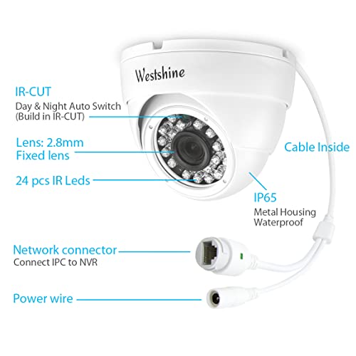 WESTSHINE 4MP Telecamera IP POE(Power Over Ethernet), Telecamera IP Sicurezza, Telecamera di sorveglianza domestica, P2P Cloud, Easy Remote View Motion Detection, 24pcs IR Leds 15Meter Night Vision