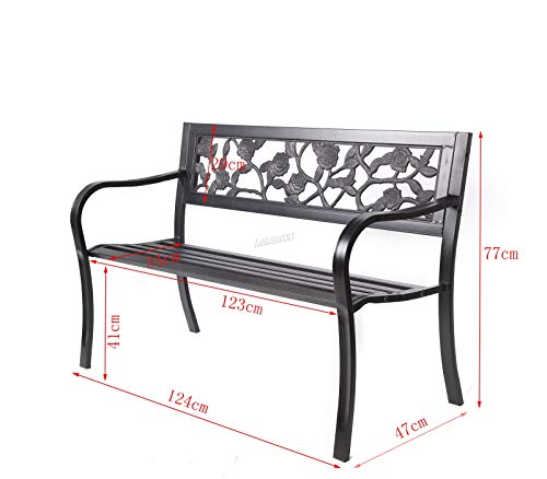 Westwood Panca da giardino a 3 posti listello in acciaio rosa stile parco patio mobili da giardino Sedia sedile in ghisa metallo C074 nero