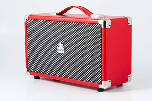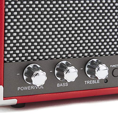 GPO Westwood Speaker Bluetooth Retro, Diffusore Portatile da 25 Watt con Subwoofer, Ingresso RCA, Griglia Retro, Maniglia di Trasporto, Rosso