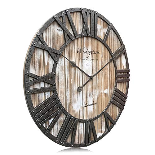 Westzytturm Orologio da Parete Grande 60 cm con 3d Numeri Romani Decorativa Stile Shabby Vintage Orologio da Parete Legno Moderno Design Rosa