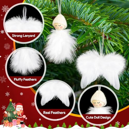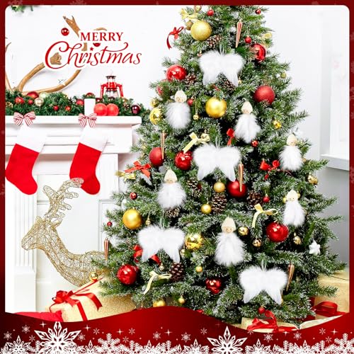 【Informazioni sulla Confezione】16 pezzi di decorazioni natalizie bianche con cordino per appendere, ciondolo per bambole con piume d'angelo: 12*8 cm/4,7*3,1 pollici;