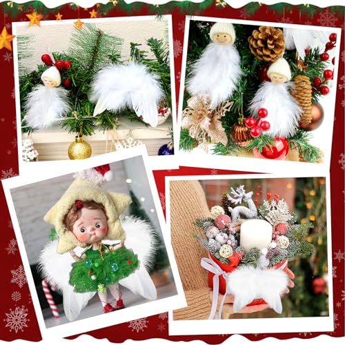 【Vivido Design con ali d'angelo】Realizzato in materiale di piume naturali e legno con cordino robusto. Le bambole con piume d'angelo con espressione carina e piume sono trattate ad alta temperatura, nessun odore particolare, soffici e morbide. Questi decorazioni albero di natale bianche sono abbastanza resistenti da poter essere utilizzati più volte.