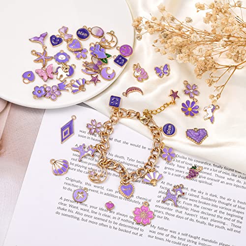 Quantità e dimensioni: riceverai un totale di 80 pezzi di ciondoli in lega viola con gocce d'olio (40 tipi ciascuno * 2);