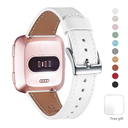 WFEAGL per Cinturino Versa Pelle, Braccialetto di Ricambio Premium Pelle Cinturinio per Versa/Versa 2 /Versa Lite/Versa SE Fitness Smart Watch (Bianco+Fibbia Argento)