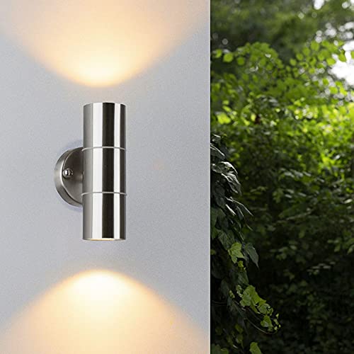 WFZRXFC Applique Da Parete Cilindrica In Argento Da Esterno A LED In Acciaio Inossidabile IP65 Impermeabile Applique Da Parete 6W Bidirezionale GU10 Luce Del Riparo Della Sorgente Luminosa Per La Lamp
