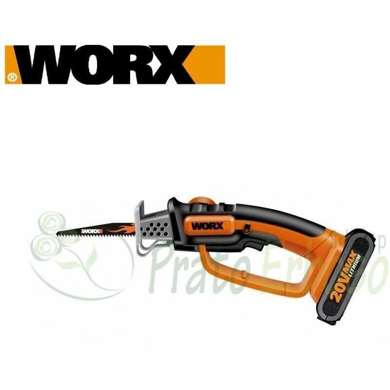 Seghetto Worx WG894E.5 a batteria 20 V litio molto silenzioso, leggero 1,3kg con batteria (non in dotazione), molto maneggevole. Utilizzabile per il taglio di tubi, pannelli, tondini metallo, potatura. Lunghezza della lama cm. 13.5 con soli 30 minuti di carica, si ha un capacità dell'80%. In dotazione Seghetto, 2 lame da legno da cm. 13,5 e una lama cm. 6,5.