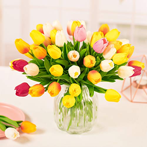 Dimensioni perfette: lunghezza dell'intero bouquet: 33,5 cm. Lunghezza del fiore: 5,1 cm. Larghezza: 3 cm. Una confezione di bouquet di tulipani è perfetta per decorare la casa o una festa.
