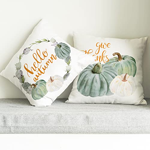 Whaline 4 federe per cuscino autunnale con zucca verde, motivo ciao autunno, per divano, camera da letto, ufficio, decorazione per casa, 45,7 x 45,7 cm