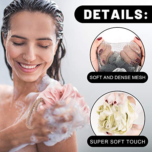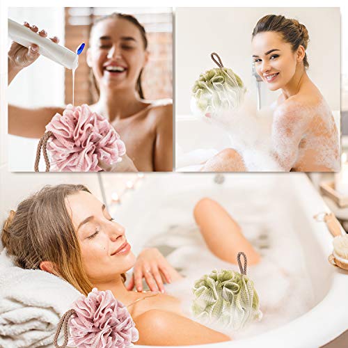 Set di 4 palline da doccia con diversi colori, grigio chiaro, verde cristallo, rosa sfumato, verde psichedelico, per soddisfare le diverse esigenze e gusti dei tuoi familiari. Questa spugna colorata porta un'atmosfera rilassante e piacevole quando si fa la doccia.