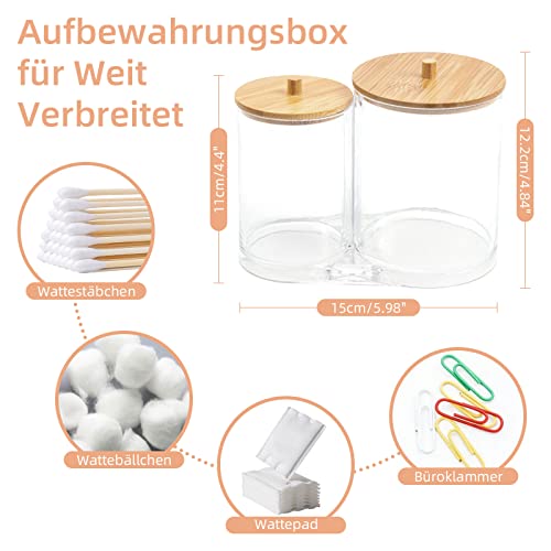 Il nostro contenitore trasparente per dischetti di cotone misura 15 x 12,2 cm. Organizer compatto 2 in 1 per cosmetici, ideale per trucchi, batuffoli di cotone, forcine per capelli e così via. Il supporto minimalista per tamponi non occupa troppo spazio.